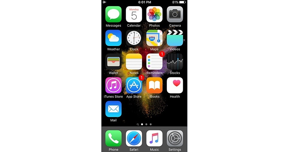 アイコンが背景と混同するようなデザインにしてはいけません。次の例では「Stocks」というアイコンは暗い色の背景をバックにすると識別が困難です。