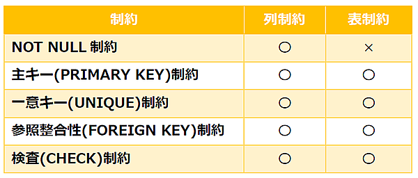 - 定義可能な制約の種類