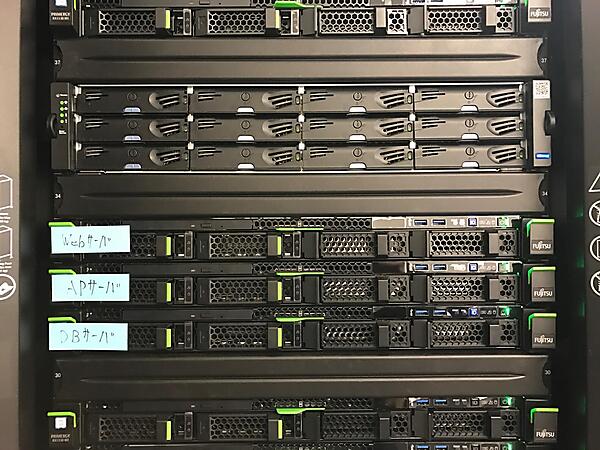 弊社が行っているLinuxでWeb3層システムを構築する研修では、実際に3台のサーバと1台のストレージを使用しています。各サーバの役割は受講者が決めることができるので、OSをインストールする際は図6のように付箋で目印をつける人もいます。実際にはデータセンタに置かれているサーバにはテプラを使用したきれいな識別テープを貼るのですが、テープをインフラエンジニアが作成することもあり、普段の頭を使う仕事から離れて妙に単純作業に没頭してしまうといった話はインフラエンジニアあるあるかもしれません。