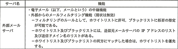 図2のフィルタリング機能より、受信を許可する場合はホワイトリストに条件を記載すればよいことが分かります。また、条件を記載するリストには「送信元メールサーバのIPアドレス」と「送信ドメイン名」の2つがあるため、解答は「送信元メールサーバのIPアドレスのホワイトリストにメールサーバZのIPアドレスを追加する」になります。