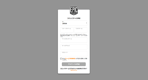 ダウンロードする際に、Epicアカウントでのログインを求められるので、アカウントを所持していない場合は作成してください(図3)。名前やメールアドレスなどの基本的な情報を入力するだけで作成できます。