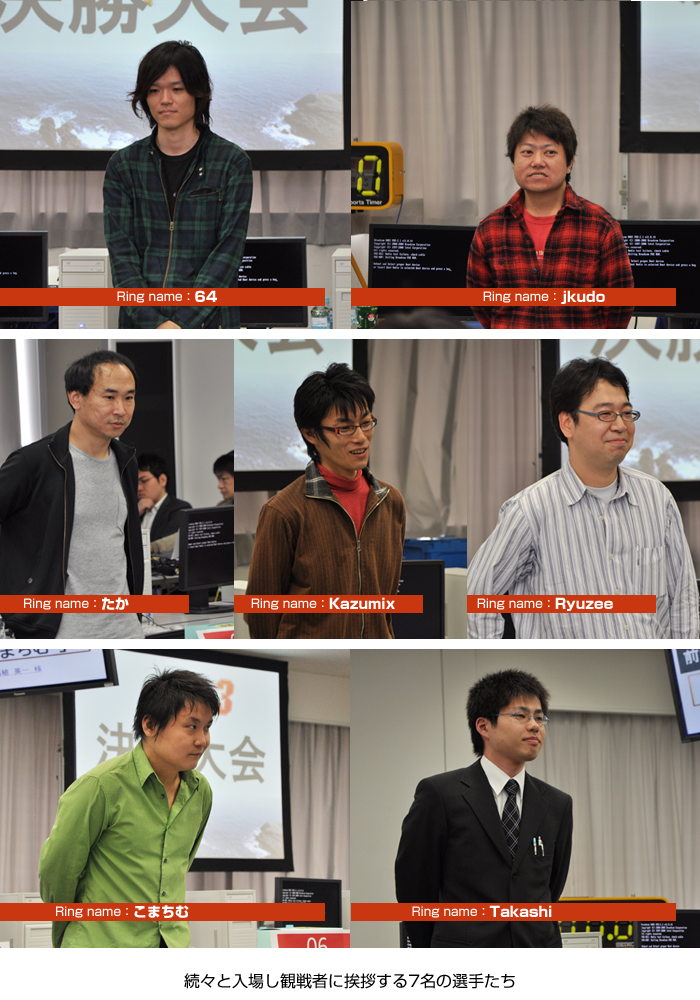 5人目は、予選通過順位2位のjkudoさん(工藤氏)。第2回大会では惜しくも準優勝でした。前回の雪辱を果たすため北海道からの参戦です。チャンピオンベルトは津軽海峡を渡ることができるのでしょうか。