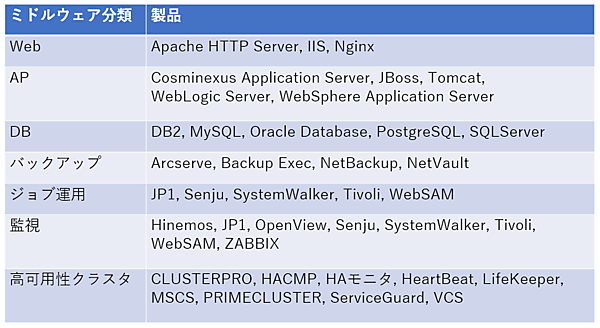図8は私がこれまでに経験してきたミドルウェア製品です。同じ種類のミドルウェアでも様々なメーカから提供されており、それぞれに特徴があります。プロジェクトによって使用する製品は異なるためさまざまな製品の知識が必要になりますが、1つの製品を経験すればその種類のミドルウェアについては概念を理解できるので、それほど恐れるものでもありません。