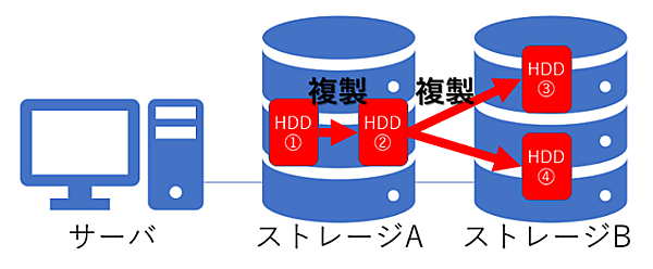 機能も豊富で、よく使用されるのは装置内のHDD間でデータを複製する機能です(図9)。例えば、HDD①に保存しているデータをあるタイミングでHDD②に複製し、さらにHDD②のデータをHDD③やHDD④に複製すれば二重でバックアップを取得できます。