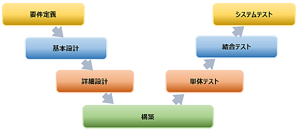設計書ができあがったら実際に作り始め(「構築」フェーズ)、完成したら設計書通りに動くかテストします(「単体テスト」「結合テスト」「システムテスト」フェーズ)。最終的にすべてのテストをクリアするとシステムをリリースし、ITサービスとして一般の方々や使用者に公開します。このように、上から下まで水が流れるかのように作業を行い、手戻りせず進めていくことから「ウォーターフォール型開発」と呼ばれています。