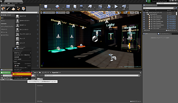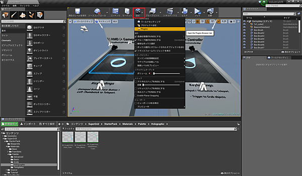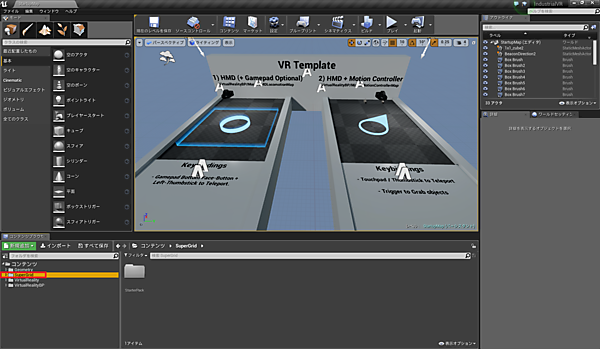 これで、アセットのインポートは終了です。SuperGrid Starter packのプロジェクトを閉じて、マイプロジェクトから前回作成した「MotionControllerMapの」VRサンプルプロジェクトを開いてみましょう、SuperGridフォルダが追加されているはずです(図7)。