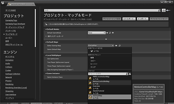 この設定を行うことで、次回以降にUE4を起動した際は始めに“MotionControllerMap”が表示されます。
