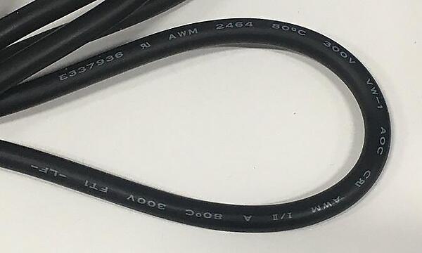 被覆にはビニール(ポリエチレン等)やエナメルが使われる。ケーブルによっては被覆に電線の仕様(適合する規格や耐圧等など)が記載されていることもあるが(図1)、記載されているのはコネクタを含めた製品としてのケーブルの仕様ではなく使われている銅線の仕様である。