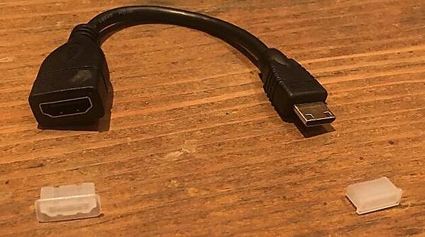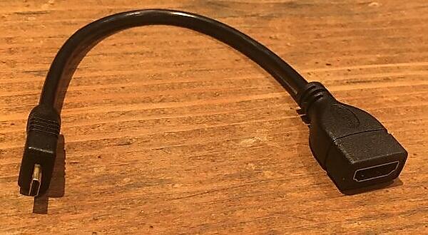 使用している機器によっては、miniHDMI-HDMI変換ケーブル(図11)やmicroHDMI-HDMI変換ケーブル(図12)も必要になるだろう。例えば、本連載でもたびたび紹介しているミニサイズPCのGPD WINにはminiHDMI端子が、レノボのYOGA BOOKにはmicroHDMI端子が用意されている。