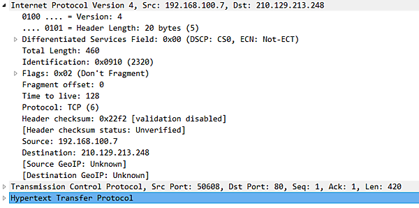 住所に該当する層で、ここで活躍するのがIP(Internet Protocol)というプロトコルです。プロトコルなので取り決めがあるわけですが、重要な取り決めとしてIPアドレスという住所に該当するものがあります。図7では送信元のコンピュータが”192.168.100.7”、宛先のコンピュータが”210.129.213.248”というアドレスを使用していることが見て取れます。