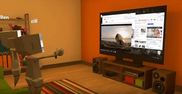 VRでそれぞれがアバターになって会い、デスクトップ画面を共有することができます。アバターはシンプルで、ロボットのような外見は全員が共通しており、アイコンとユーザー名を頭の部分に表示する仕組みです。2、3人のプライベートな会合から、300名程度の比較的大規模な「イベント」まで、人数の面で幅広く使え、同時接続が多くなっても軽快に動作するのが特徴です。