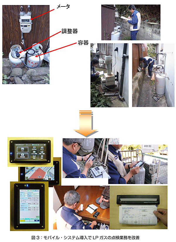 従来は、保安員が車で移動し、点検中または点検後に「点検調査票」に手書きで結果を記入し、顧客に票の控えを渡して、正本を会社に持ち帰っていました。 そして、それを元にシステムに入力していました。