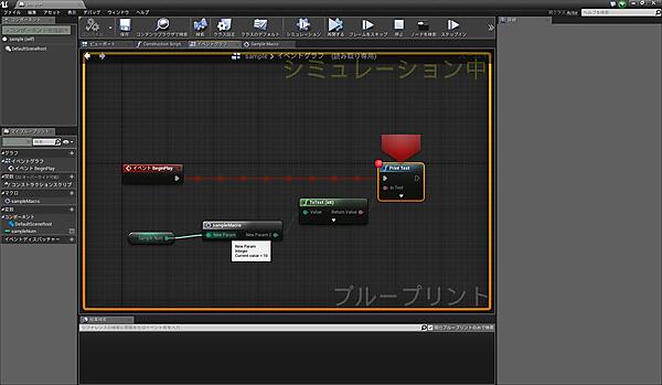 なお、「ToText(int)」ノードは「integer」型を「Text」型にキャストするノードで、「sampleMacro」のアウトプットピンと「Print Text」のインプットピンを繋ぐと自動で追加されます。