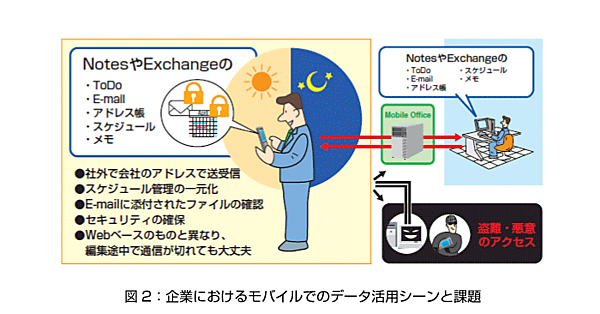 もちろん、読者の皆さんの中には、モバイル・データを活用することの重要性を理解した上で、もっと現実的な問題を気にしている方もいるでしょう。例えば、重要なデータを社外で利用することのセキュリティの問題、すでに導入済みのWebシステムの使い勝手の向上、スマートフォンを利用することによるコスト削減などです。これらについては、後ほど順次説明します。