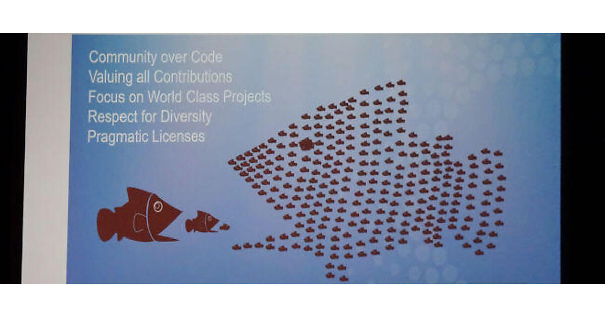 2日目のキーノートセッションは、このイベントのプラチナスポンサーのIBM、そしてビデオ撮影のスポンサーであるComcastに宣伝の場を与えたとも言えるもので、企業よりも個人の貢献を重視したいASFにしては最大限の譲歩といったところだろう。非営利でありながら、イベントなどのコストのかかる部分にはスポンサーの力を借りなければ立ち行かない現実を見たという気分になるセッションだった。
