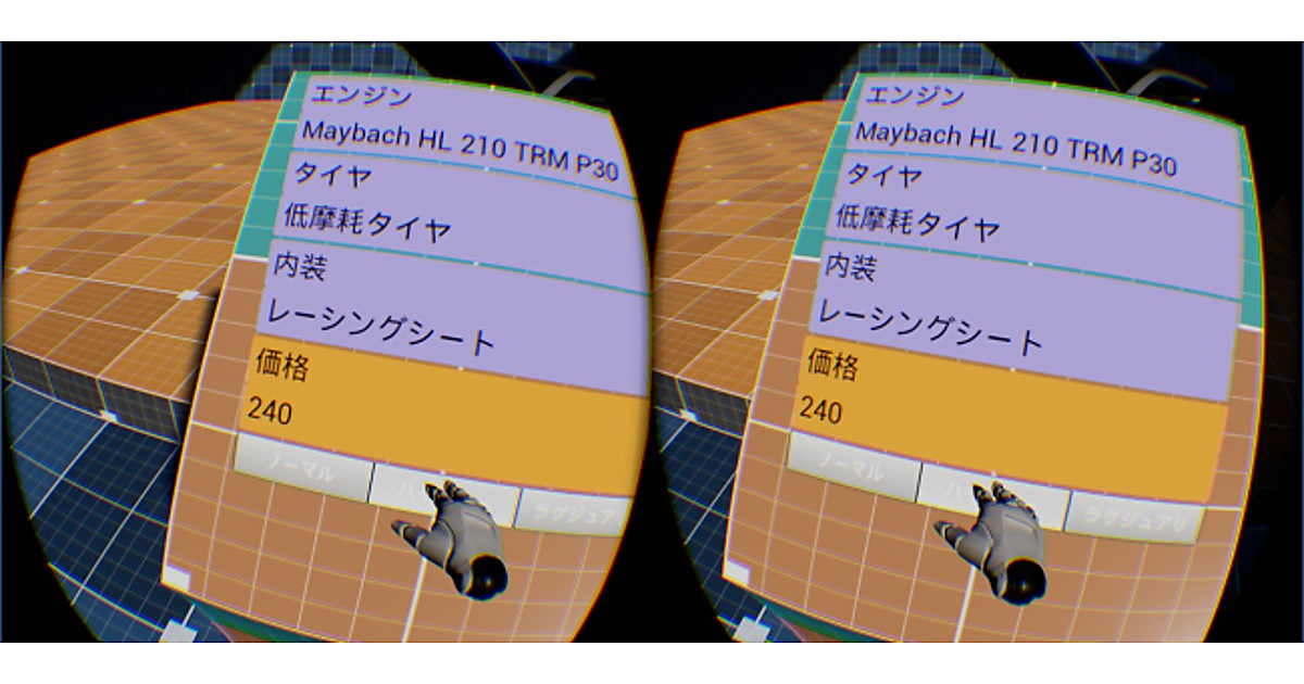 一般的に、システムのUIと言えば画面の定位置に表示されるHUD(ヘッドアップディスプレイ)タイプのものが主流ですが、HUDタイプのUIをVRで使用すると、目の前にあるものが自分の頭の動きに追従してくる違和感から、強いVR酔いが発生します。
