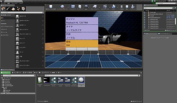 なお、今回作成するUIの機能は「ノーマル」「ハイパワー」「ラグジュアリ」という車のオプションに合わせて車の詳細情報を表示するもので、表示するデータはエクセルで作成したCSVファイルから読み込みます。