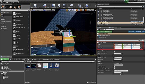 まず、“VirtualRealityBP/Blueprints”以下にある「BP_Motion_Controller」を開き、「コンポーネントを追加」から「Widget Interaction」を追加してください(図31)。