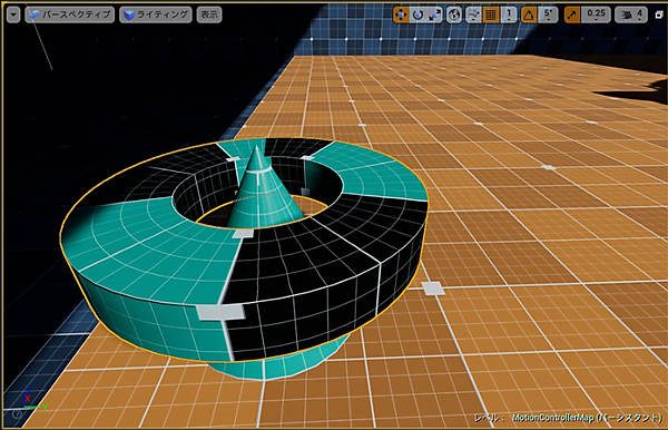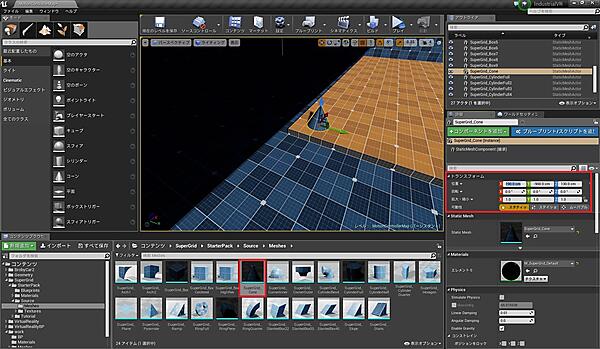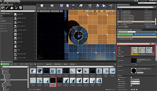 「SuperGrid_RingFull」をレベルに配置し、図4の通りにトランスフォームを設定してください。