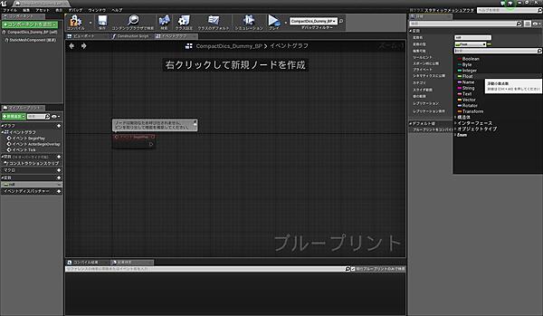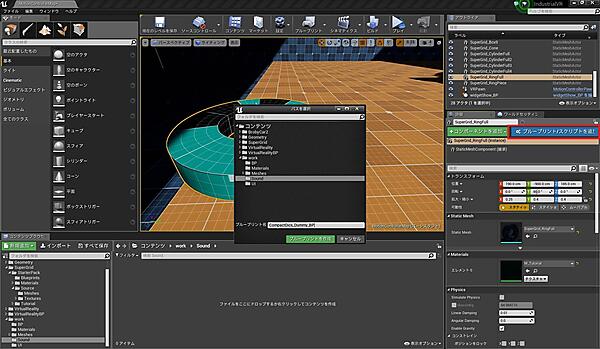 SuperGrid_RingFullを選択し、ブループリント/スクリプトを追加からブループリントを作成し、”CompactDisc_Dummy_BP”という名前でSoundフォルダに保存します(図6)。