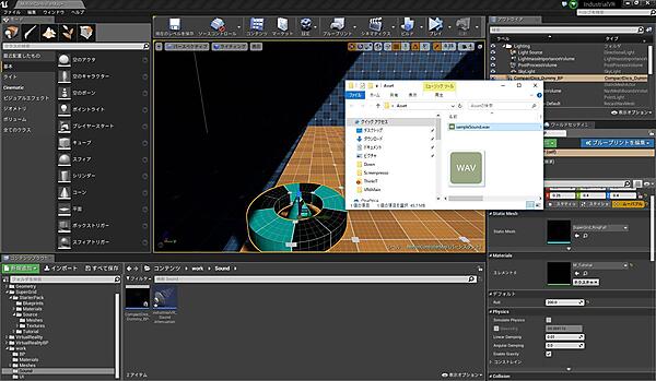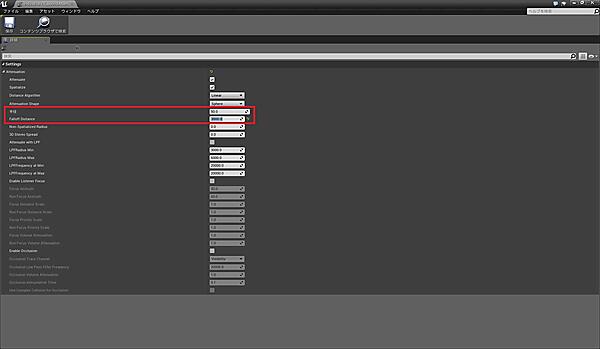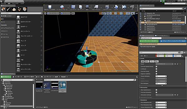 さて、サウンドファイルはインポートできましたが、これをレベル上でそのまま再生しても、ただ音が聞こえるだけで音源との距離による聞こえ方の違いはありません。音源との距離によってサウンドの聞こえ方がどのように変わるのかを設定する必要があります。