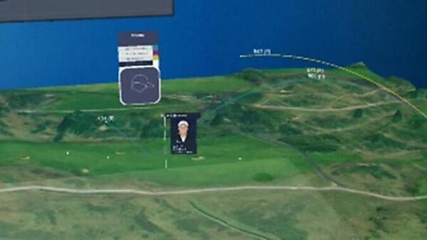 これらの取り組みを踏まえて、3Dで再現されたゴルフクラブの地図の上に、トーナメント期間中の成績の推移や、選手間のドライバー飛距離の比較など試合データを重ねて見ることができるようになりました。