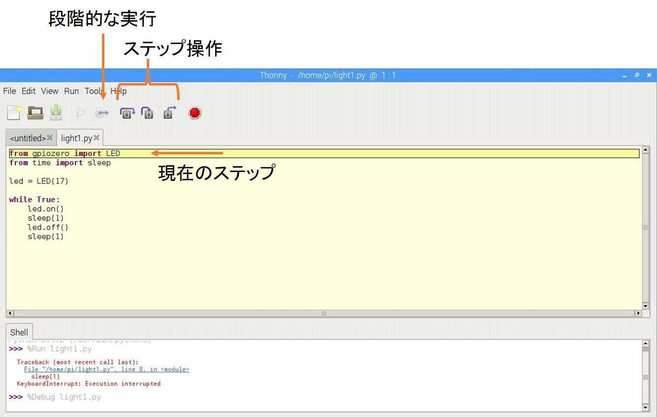 これまではプログラムの入力や実行にはターミナル上でのコマンド入力が必要でしたが、「Thonny Python IDE」上から行うことができます。さらに、以下の機能もあるので、より効率的なプログラミングが可能になります。