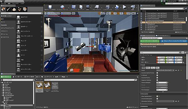 次に、レベル上でBGMを鳴らしているコンポーネント「RealisticMusicRender_MusicDay01」(図2)を削除します。このサウンドコンポーネントはVRに最適化されたものではないため、そのままBGMを鳴らすと第7回で説明したようにVR体験の質を損なってしまうからです。