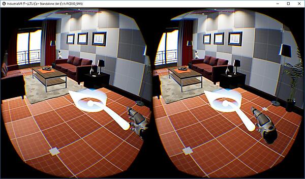 これで応接室をVRのレベルとして扱うための設定ができました。VRプレビューで確認してみると、ショールームと同じようにハンドデバイスを使ってレベル内を移動できるようになっていると思います(図5)。