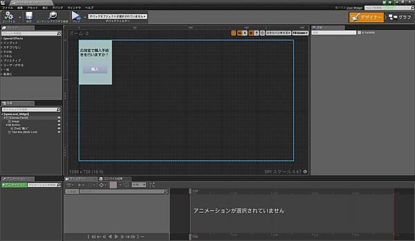 次にopenLevel_Widgetを開いて、図17を参考にUIのレイアウトを作成してください。UIのレイアウト作成については第6回で詳細に解説したので、不明点がある場合はそちらを参照してください。