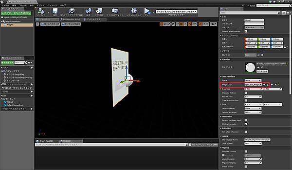 これでWidgetの準備ができたので、Widgetをレベルに配置するためのブループリントを作りましょう。第6回で作成した「widgetShow_BP」を複製して「openLevelWidget_BP」とリネームし、コンポーネント「Widget」の「widgetClass」を「openLevel_Widget」に変更してください(図19)。