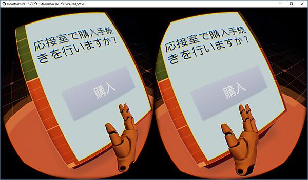 これで作業は完了です! さっそくテストしてみましょう。VRプレビューで起動して、ワープポイント上で「購入」ボタンをタップしてみてください(図22)。