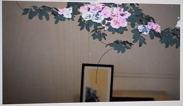 絵の枠を越えて部屋の中一杯のバラ HoloLensで見ることで完成する水墨画