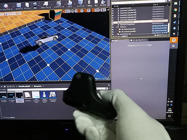 もちろん、VR HMDを被って動かせば目の前で実際に物を掴んでいるような感じで動かすことができます。Viveトラッカーはアイデア次第で色々な使い道があるデバイスなので、「こんなものがあって簡単に使える」ということを覚えておけば、ひょんなところで役に立つかもしれません。