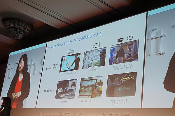 続いて、MRを「モダンワークプレイスを変える可能性がある」として取り上げた。「MRというとエンターテイメントと思われるかもしれないが、ビジネスこそMRのインパクトが大きいと思っている」と伊藤氏。特に、工場のファーストラインワーカーがMRで作業のヘルプを見る用途や、インフォメーションワーカーがMRでコラボレーションする用途など、さまざまな活用シナリオを紹介した。