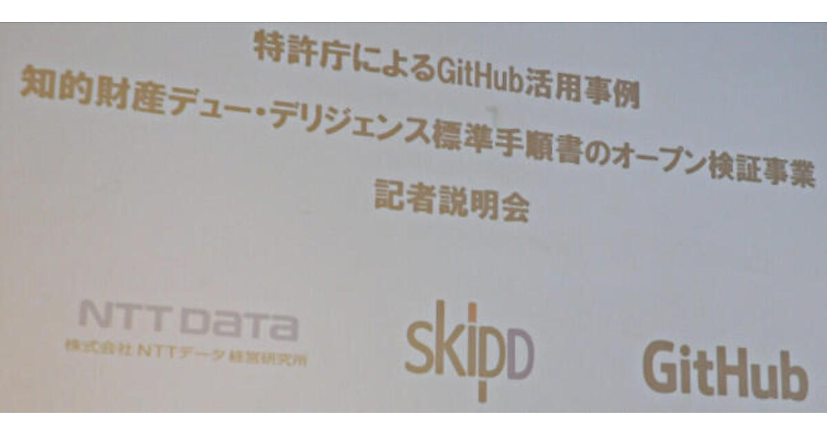 2017年11月21日、都内においてGitHubの日本法人ギットハブ・ジャパン合同会社と特許庁、それに株式会社NTTデータ経営研究所が共同で記者会見を行った。内容は特許庁が知的財産のデュー・デリジェンス(適性評価手続き)に関する調査の標準手順書の策定をGitHubを採用して開始したというもので、ソースコードリポジトリーとして用いられているGitHubを使い、プログラムではなく文書を共同でレビューすることを目指したプロジェクトである。