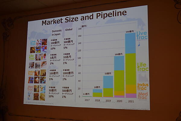 ヘルスケア部門は国内だけでも3兆円、海外では10兆円を超える市場規模を持っているとのことで、Tracは2021年までに155億円の売り上げを達成することを目標にしているそうです。ピッチの中で海外進出に関する話を多くされており、その中でも「国内では先例がないプロダクトだからこそ、海外だと逆に進出しやすい」のだという言葉がとても印象に残っています。
