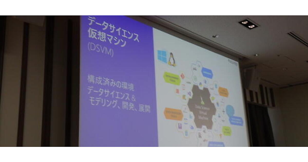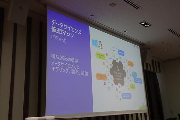 まずは、データサイエンス仮想マシン(DSVM、旧名ディープラーニング仮想マシン)が紹介された。データサイエンスや機械学習に必要な環境をプリインストールしたMicrosoft Azureの仮想マシンで、最近ではChainerもサポートしている。