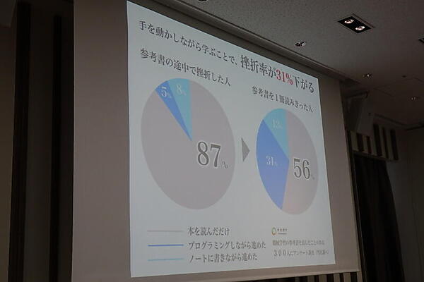 同社では、本を読んだだけでは挫折しやすいという考えから、手を動かしながら学ぶ方針をとっている。特に、プログラミングだけでなく手書きで数学も学び、原理原則を理解するという方針だ。