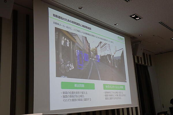 そのほか、自動運転のためにカメラ画像から車両や構造物を検出する応用や、建造物の劣化診断、医療分野での細胞のクラス分類、ペットの皮膚科の獣医を派遣する企業で事前に写真からAIで診断する例などが紹介された。