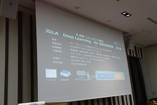 人材育成の分野については、2020年までに不足が見込まれるAI技術者が4.8万人いるという。そこで、事業に応用できる人材の「G(ジェネラリスト)検定」と、実装できる人材の「E(エンジニア)資格」の2つの資格を設ける。これにより、自習のための体系化や、企業研修でのカリキュラムなどへの効果を見込む。資格取得者としては、2020年にG資格を10万人、E資格を3万人の目標が語られた。