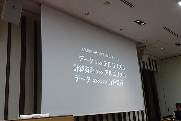 さらに、最適解を求めるにはたくさん試行したもの勝ちとして、「アルゴリズムよりデータの量と質が大事」と主張。そのため、有用なデータを作る人材が必要だと語った。