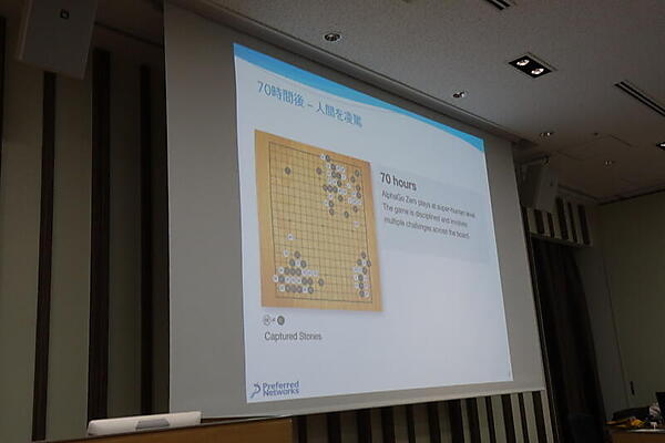 最初の話題は、囲碁をゼロから学習した「AlphaGo Zero」。19時間で定石の概念を理解し、70日間で人類を凌駕したという。これは正解データを自分で作る強化学習のパワーだと丸山氏は解説した。