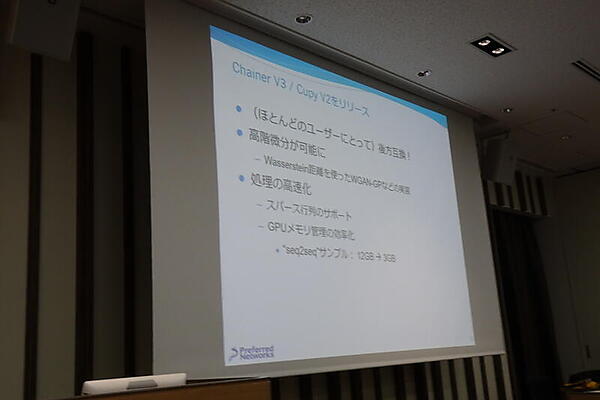 次の話題はChainer V3/Cupy V2のリリース。高階微分やスパース行列に対応し、GPUメモリ管理を効率化したという。