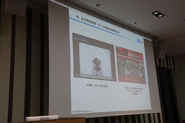 同社では、相談から活用戦略、技術詳細、開発・PoC、周辺開発、実業務へのデプロイまでを請け負っている。事例としては、NHKのモノクロ映像の彩色AIがあり、昔の大相撲映像のカラー化などが紹介された。
