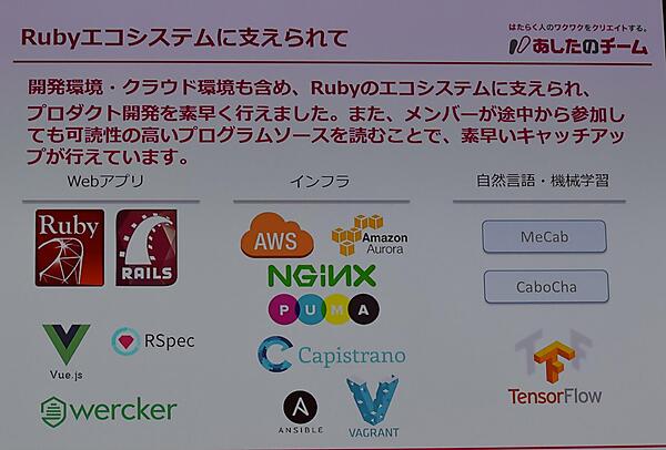 そして、創業から7年間での導入が300社にとどまっていたところ、Rubyに切り替えてから2年半で800社が導入した実績を挙げ、「開発チームはRubyのおかげで変革できた」と感謝を表した。