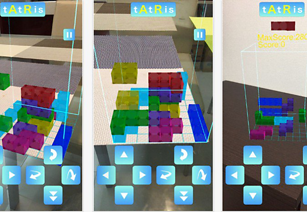 『tAtRis -タトリス-』は、ARKitを利用して開発されたアプリケーションで、上から落ちてくる様々な形のブロックを配置していき、縦・横一列をブロックで揃えることで消すことができるパズルゲームです。フィールドは360度から見回すことができ、立体的なオブジェクトや上から覗くブロックの隙間など『テトリス』とはまた違った感覚のパズルを楽しめます。