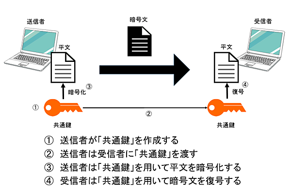 共通鍵暗号方式では、通信に先立って鍵を安全に相手に渡す必要がありますが、インターネット上で大多数の相手に安全に共通鍵を渡すのは困難であるという問題点があります。