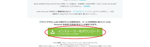動作環境を確認したらUnityをダウンロードし、自分のPCにインストールしましょう。インターネット環境が必要になるため、通信環境が良い場所で作業を行うよう、気をつけてください。