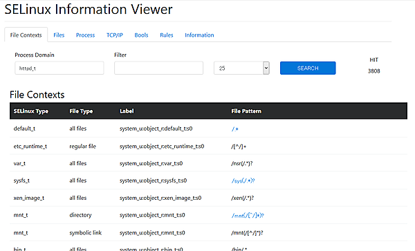 最後にもう1つ、「SELinux Information Viewer」というツールを紹介します。このツールはWebブラウザ上からSELinuxの情報を参照できます。こちらのサイトから入手できます。